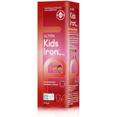 Το Altion Kids Iron Spray αποτελεί ένα ειδικά σχεδιασμένο παιδικό συμπλήρωμα διατροφής με βάση τον σιδηρούχο πυροφωσφορικό σίδηρο, σε πατενταρισμένη μορφή Lipofer microcapsules. Ο συγκεκριμένος σίδηρος είναι μικροενθυλακωμένος, ώστε να προσφέρει υψηλή βιοδιαθεσιμότητα και καλή ανεκτικότητα, χωρίς τις συνηθισμένες πεπτικές ενοχλήσεις που προκαλούν άλλες μορφές σιδήρου.