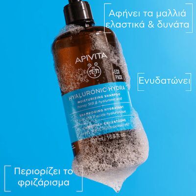 Το Apivita Hyaluronic Hydra Moisturizing Shampoo είναι ένα φυσικό σαμπουάν που καθαρίζει απαλά, περιορίζει το φριζάρισμα και το σπάσιμο, ενώ αφήνει τα μαλλιά απόλυτα ελαστικά και πιο δυνατά.