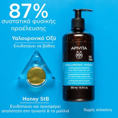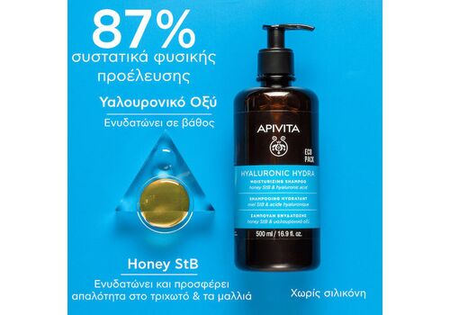 Apivita Hyaluronic Hydra Σαμπουάν Ενυδάτωσης με Υαλουρονικό & Μέλι, 500ml