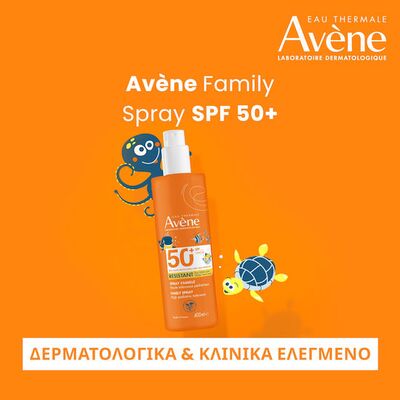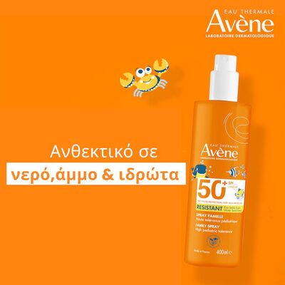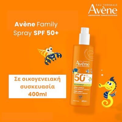 Το Avene Resistant Family Spray SPF50+ προσφέρει πολύ υψηλή προστασία σε όλη την οικογένεια με μια fragrance-free σύνθεση τριπλής αντιστασης.