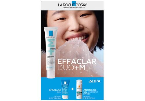 LA ROCHE POSAY Effaclar Duo+ M Κρέμα Για Ατέλειες, Μαύρα Στίγματα & Σημάδια 40ml & ΔΩΡΟ Effaclar Gel Καθαρισμού Για Λιπαρό Ευαίσθητο Δέρμα 50ml & Anthelios Oil Correct SPF50 Αντηλιακό Προσώπου Για Τις Ατέλειες 3ml