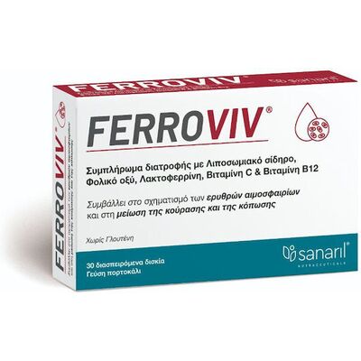 Sanaril Ferroviv για το Σχηματισμό των Ερυθρών Αιμοσφαιρίων & Μείωση της Κούρασης & Κόπωσης 30 Διασπειρόμενα Δισκία