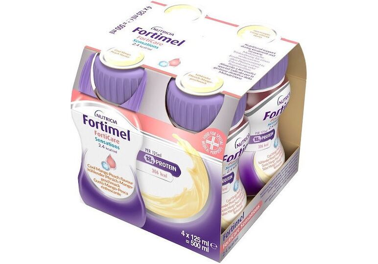 Nutricia Fortimel Forticare Sensations 2.4kcal/ml Θρεπτικό Συμπλήρωμα Διατροφής Πλούσιο σε Πρωτεΐνες με Γεύση Μάνγκο & Ροδάκινο, 4x125ml