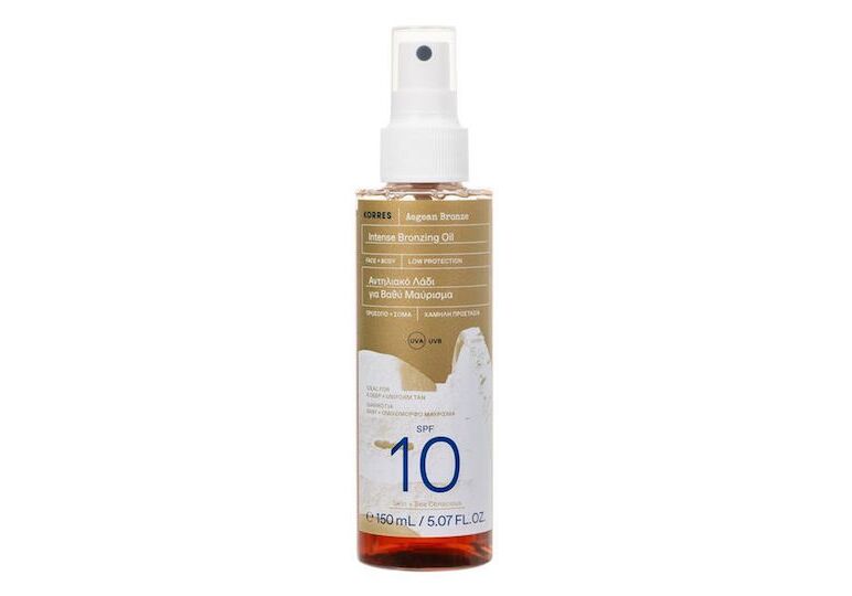 Το Korres Aegean Bronze Intense Bronzing Oil SPF10 είναι ένα αντηλιακό λάδι μαυρίσματος με μεταξένια υφή, για βαθύ και λαμπερό μαύρισμα.