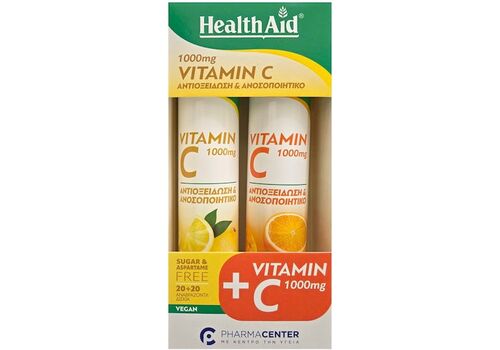 Health Aid Vitamin C 1000 mg Γεύση Λεμόνι 20 αναβρ. δισκία + Vitamin C 1000 mg Γεύση Πορτοκάλι 20 αναβρ. δισκία.