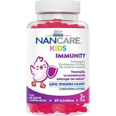 Το συμπλήρωμα διατροφής NESTLÉ® NANCARE® KIDS IMMUNITY, με καθημερινή χρήση, υποστηρίζει το ανοσοποιητικό σύστημα με έναν συνδυασμό θρεπτικών συστατικών. Οι βιταμίνες C, D, B6, B12, ο ψευδάργυρος και το σελήνιο συμβάλλουν στη φυσιολογική λειτουργία του ανοσοποιητικού συστήματος.