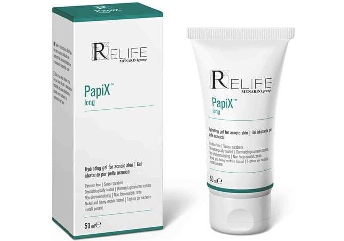 Το Relife PapiX Long Hydrating Gel είναι μία γέλη που βελτιώνει την εμφάνιση του ακνεϊκού δέρματος, χάρη στην ενυδατική δράση του ισομερούς σακχαρίτη και στη σμηγματορρυθμιστική δράση που παρέχει η νικοτιναμίδη (νιασιναμίδη).