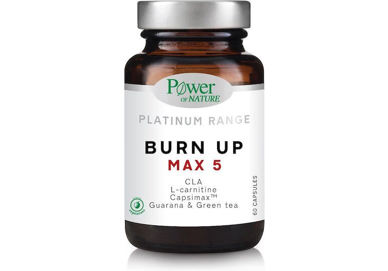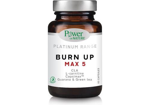 Το Power of Nature Platinum Range Burn Up Max 5 περιέχει έναν συνδυασμό πολύτιμων συστατικών: L-καρνιτίνη, συζευγμένο λινολεϊκό οξύ (CLA), εκχυλίσματα γκουαρανά, πράσινου τσαγιού και κόκκινης πιπεριάς, νιασίνη και βιταμίνη Β6.