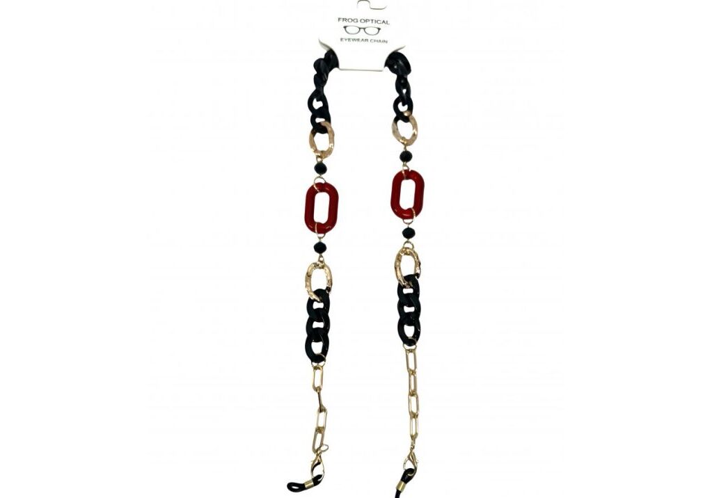 Αλυσίδα γυαλιών Frog Optical σε μαύρο χρώμα με κόκκινη απόχρωση που αποτελεί πρακτική αλλά και κομψή λύση για να κρεμάσετε τα γυαλιά από το λαιμό, χωρίς να αναγκαστείτε να τα φοράτε στο κεφάλι ή να τα κρατάτε στα χέρια, προσθέτοντας παράλληλα στυλ στην καθημερινή σας εμφάνιση.
