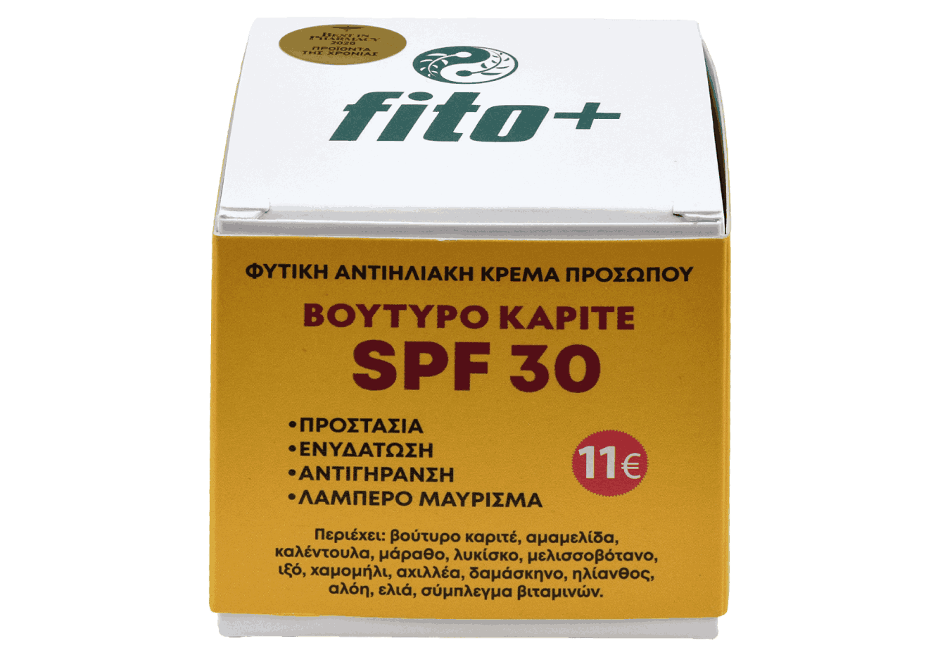 Η φυτική αντηλιακή κρέμα προσώπου της Fito+ με βούτυρο καριτέ ενυδατώνει, έχει αντιγηραντική δράση, προσφέρει λαμπερό δέρμα.