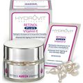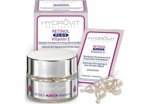 O HYDROVIT RETINOL PLUS Vitamin E, είναι ένας ορός προηγμένης αντιγηραvτικής και αντιρυτιδικής επανόρθωσης. Κάθε μεμονωμένη κάψουλα, περιέχει έναν πολύ αποτελεσματικό συνδυασμό καθαρής ρετινόλης (μια πολύ δραστική μορφή βιταμίνης Α) & βιταμίνης Ε, που επιταχύνει τη φυσική κυτταρική διαδικασία ανανέωσης του δέρματος και το βοηθά να ανακτήσει τη νεανική του εμφάνιση, χαρίζοντας μια δροσερή και φωτεινή επιδερμίδα. Μειώνει ορατά τις λεπτές γραμμές και τις ρυτίδες, βοηθά στη βελτίωση της τονικότητας και της ελαστικότητας του δέρματος. Διατηρεί μια φρέσκια όψη και εξομαλύνει τον τόνο του δέρματος. Η Βιταμίνη Ε αυξάνει την ικανότητα φωτοπροστασίας και προλαμβάνει την επιταχυνόμενη γήρανση. Η επιδερμίδα αποκτά φωτεινότητα και βελτιώνεται η όψη της μέρα με τη μέρα.