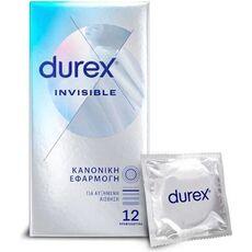 Durex Προφυλακτικά Εξαιρετικά Λεπτά Invisible Κανονική Εφαρμογή, 12τεμ