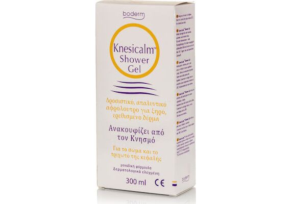 Το Knesicalm™ shower gel είναι ένα ιατροτεχνολογικό προϊόν, ήπιο καθαριστικό αφρόλουτρο για έντονα ξηρό και ερεθισμένο δέρμα. Ανακουφίζει και καταπραϋνει τα συμπτώματα του κνησμού (αίσθημα καύσου, ερύθημα, απολέπιση).