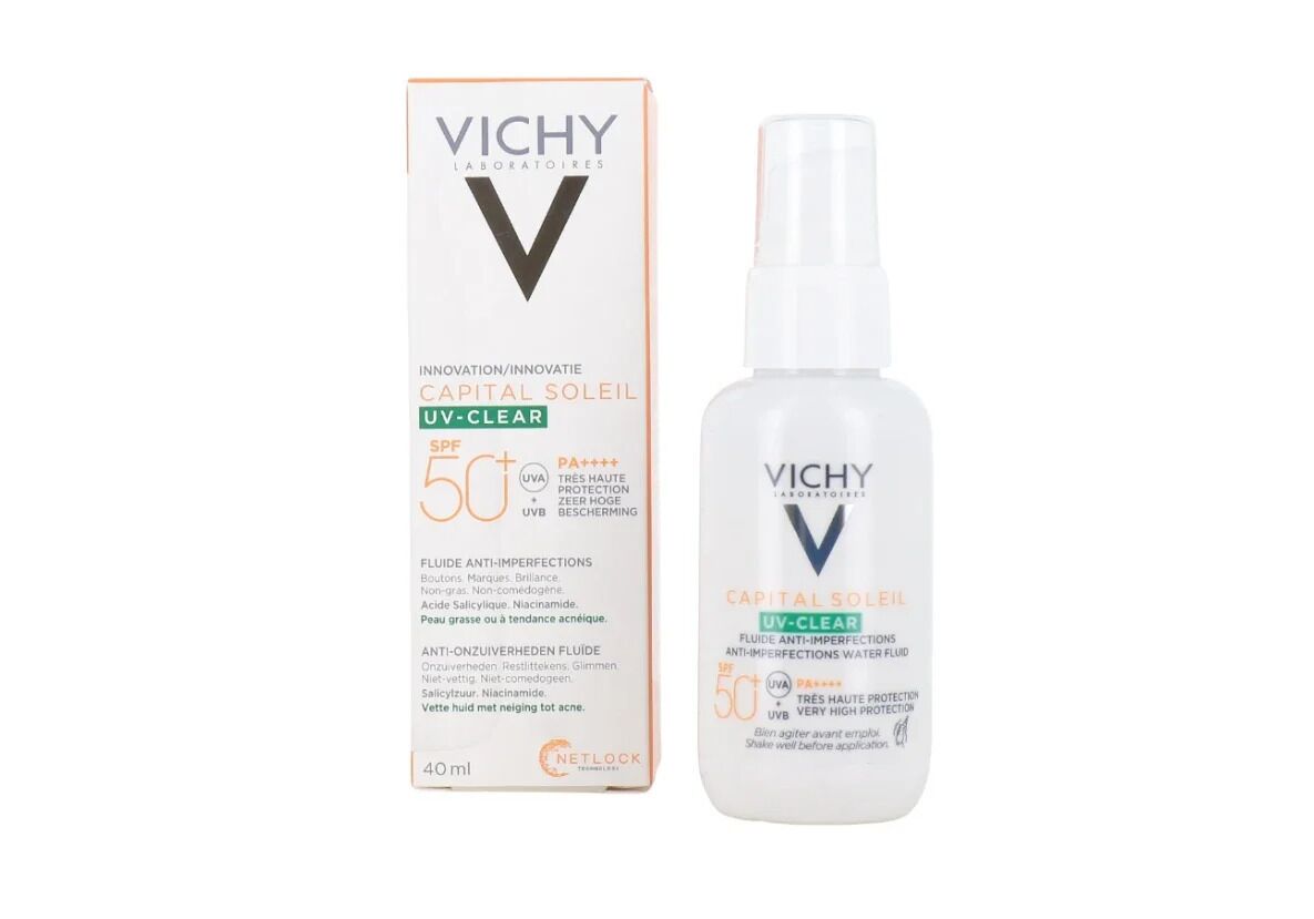 Vichy Capital Soleil UV-Clear Water Fluid Anti-imperfections SPF50+ Λεπτόρρευστο Αντηλιακό Προσώπου κατά των Ατελειών, 40ml