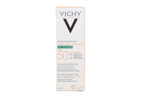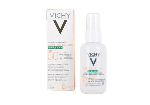 Το Vichy Capital Soleil UV-Clear SPF50+ αποτελεί ένα αντηλιακό προϊόν που προσφέρει προστασία από την UVA και UVB ακτινοβολία. Είναι κατάλληλο για ευαίσθητες και λιπαρές επιδερμίδες, καθώς περιέχει ένα σύμπλεγμα από φυσικά συστατικά που βοηθούν στην προστασία και την ενυδάτωση του δέρματος.