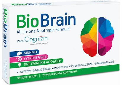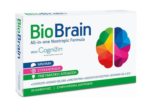 Το BIO BRAIN® περιέχει την διεθνώς αναγνωρισμένη ουσία Cognizin, καθώς και 4 άλλα συστατικά φυσικής προέλευσης, τεκμηριωμένα από πολυάριθμες κλινικές μελέτες. Το BIO BRAIN® αποτελεί μια ολοκληρωμένη νοοτροπική φόρμουλα ενίσχυσης μνήμης και πνευματικής απόδοσης.
