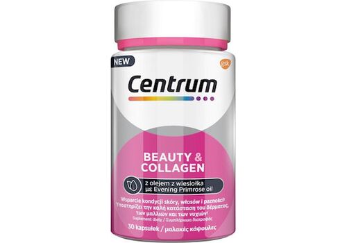 Οι Centrum Beauty & Collagen μαλακές κάψουλες περιέχουν βιταμίνες, μέταλλα, κολαγόνο και έλαιο Νυχτολούλουδου για την ενίσχυση της υγείας και της ομορφίας του σώματος.