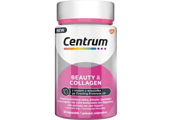 Centrum Beauty & Collagen soft capsules contain vitamins, minerals, collagen and Evening Flower Oil to enhance health and body beauty.