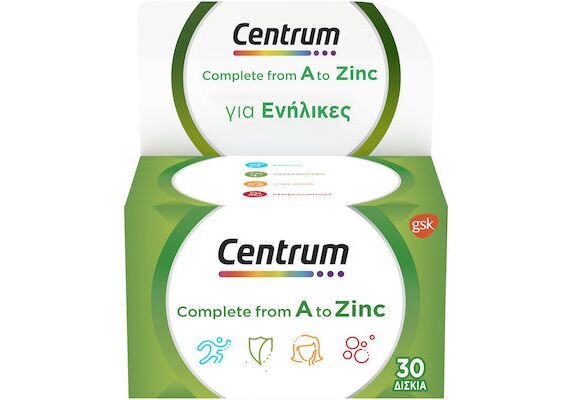 Centrum A to Zinc Πολυβιταμίνη Για Τη Διατροφική Υποστήριξη Των Ενηλίκων, 30 δισκία