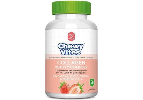 Κάθε ζελεδάκι Chewy Vites Collagen Beauty Complex περιέχει έναν ισορροπημένο συνδυασμό κολλαγόνου, 4 βιταμινών και συνένζυμου Q10. Είναι σχεδιασμένο για να υποστηρίξει την υγεία του δέρματος και τη γενική ευεξία του οργανισμού. Το κολλαγόνο αποτελεί βασικό συστατικό για την ελαστικότητα και την υγεία του δέρματος.