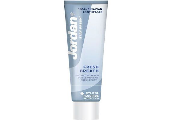 Η νέα τεχνολογία που ονομάζεται Stay Fresh™ είναι ένας συνδυασμός φθορίου & ξυλιτόλης που παρέχουν επιπλέον προστασία κατά της πλάκας και κάνουν τα δόντια πιο δυνατά. Η Jordan Fresh Breath περιέχει επιπλέον ποσότητα ψευδαργύρου που μειώνει ενεργά την κακοσμία. Επιπλέον, το συστατικό Optafresh® που περιέχει, έχει αποδειχθεί κλινικά ότι μειώνει την κακοσμία του στόματος. Ο συνδυασμός ψευδαργύρου, ξυλιτόλης, Optafresh® και μέντας, καταπολεμούν αποτελεσματικά την κακοσμία!