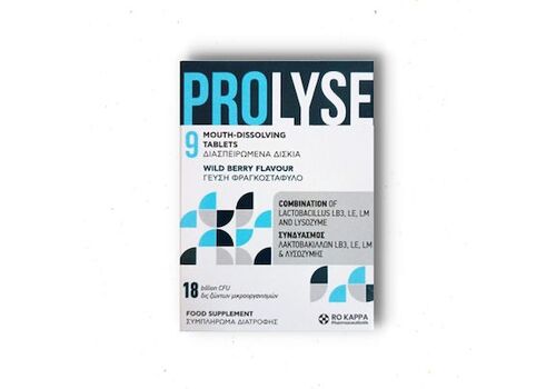 ProLyse Ενισχυμένη Φόρμουλα Προβιοτικών Λακτοβακιλλων και Λυσοζύμης για το Ανοσοποιητικό 9tabs Διασπειρόμενα Wild Berry