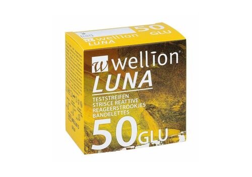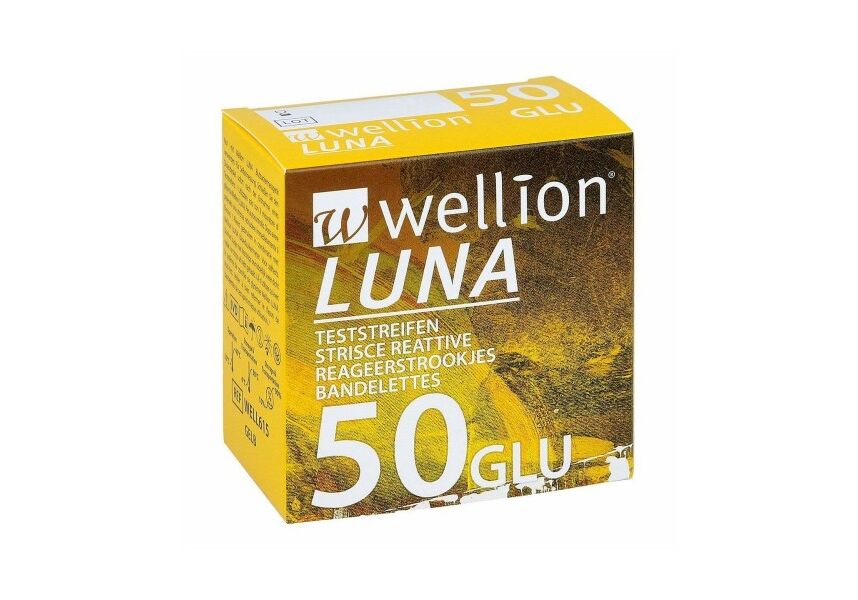 Wellion LUNA Test Strips GLU Ανταλλακτικές Ταινίες Μέτρησης Γλυκόζης 50 τμχ Oι ταινίες μέτρησης LUNA είναι προϊόν τελευταίας τεχνολογίας. Οι ταινίες έχουν κατασκευαστεί με διαφορετικές στρώσεις που περιέχουν ηλεκτρόδια τοποθετημένα σύμφωνα με μία εξελιγμένη διαδικασία. Ένα βιολογικό υπόστρωμα – οξειδάση της γλυκόζης – βρίσκεται στη ζώνη αντίδρασης της ταινίας μέσω ενός διανομέαυψηλής ακρίβειας.Η οξειδάση της γλυκόζης είναι ένα ένζυμο που αντιδρά με τη γλυκόζη του αίματος με συγκεκριμένο τρόπο. Κατά τη διάρκεια της αντίδρασης συγκεκριμένη ποσότητα ρεύματος παράγεται, που υπολογίζεται στο αποτέλεσμα της μέτρησης της γλυκόζης που εμφανίζεται στην οθόνη.
