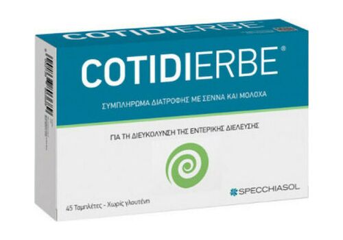 Το Cotidierbe είναι ένα συμπλήρωμα διατροφής με σέννα, μολόχα, γαρύφαλλο και κανέλα, χρήσιμα για τη διευκόλυνση της ομαλής εντερικής διέλευσης.