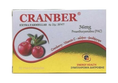 Το CRANBER EXTRA FARMELLAS είναι ένα συμπλήρωμα διατροφής με εκχύλισμα από cranberries, βιταμίνη C, σελήνιο και ψευδάργυρο που συνεισφέρει στη φυσιολογική λειτουργία του ανοσοποιητικού συστήματος και συμβάλλει στην προστασία από λοιμώξεις του ουροποιητικού συστήματος.