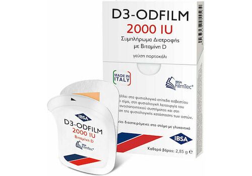 D3-Odfilm 2000iu Συμπλήρωμα Διατροφής με Βιταμίνη D, Γεύση Πορτοκάλι, 30 Ταινίες Διασπειρόμενες στο Στόμα, με Γλυκαντικά