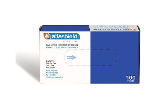 Karabinis Medical Alfashield Alfa Gloves Γάντια Νιτριλίου Χωρίς Πούδρα σε Μπλε Χρώμα 100τμχ