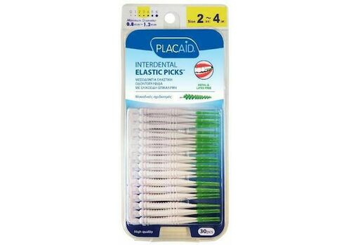 Plac Aid Interdental Elastic Picks Μεσοδόντιες Οδοντογλυφίδες Size 2(SS)-4(M) 0.8mm-1.2mm 30τμχ
