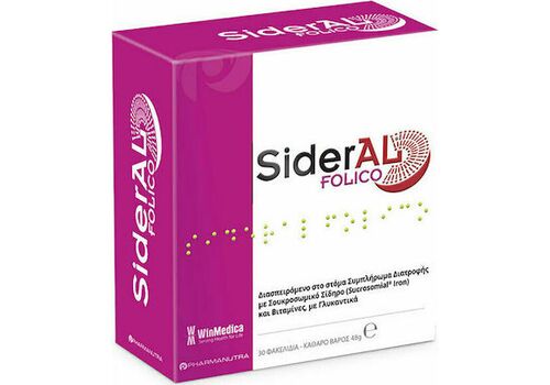 Συμπλήρωμα διατροφής Winmedica Sideral Folico 30 φακελ. για την αντιμετώπιση της έλλειψης σιδήρου και φυλλικού οξέως, τα οποία αποτελούν απαραίτητα διατροφικά συστατικά για τον ανθρώπινο οργανισμό σε όλη τη διάρκεια της ζωής.