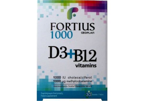 Geoplan Nutraceuticals Fortius Ultra D3 & B12 Vitamins 1000iu Συμπλήρωμα Διατροφής Για Τη Καλή Λειτουργία Του Ανοσοποιητικού Συστήματος 30 Ταμπλέτες.