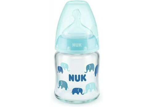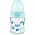Nuk Γυάλινο Μπιμπερό First Choice Plus Temperature Control Κατά των Κολικών με Θηλή Σιλικόνης 120ml για 0-6 μηνών Σιέλ Ελεφαντάκια