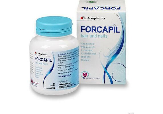 Το Arkopharma Arkocaps Forcapil περιέχει βιταμίνες του συμπλέγματος Β, βιταμίνη D , ψευδάργυρο και αμινοξέα (κυστίνη και μεθειονίνη ), παρέχοντας έναν συνδυασμό που ευνοεί την καλή διατήρηση των δομών κερατίνης του οργανισμού.