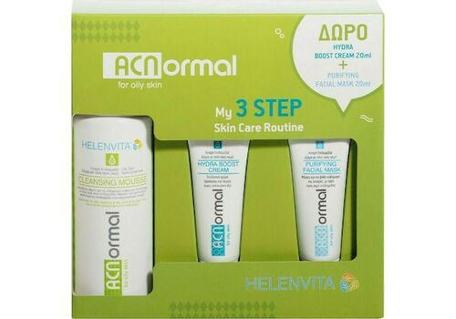 Helenvita ACNormal My 3 Steps Skin Care με Routine Cleansing Mouse Αφρός Καθαρισμού,150ml & Δώρο Hydra Boost Cream Κρέμα Προσώπου, 20ml & Purifying Facial Mask Μάσκα για Βαθύ Καθαρισμό, 20ml