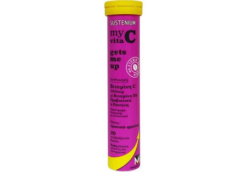 Menarini Sustenium My Vita C Gets Me Up με Βιταμίνη D3 Πρεβιοτικά & Ρουτίνη Τροπικά Φρούτα 1000mg 20 αναβράζοντα δισκία