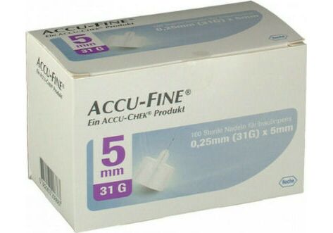 Accu chek Accu-Fine 0.25mm (31G) x 5mm Αποστειρωμένες Βελόνες για πένα Ινσουλίνης, 100τμχ