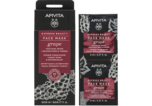 Η μάσκα προσώπου Express Beauty με σταφύλι, το μυστικό μακροζωίας των περιοχών της Μεσογείου, πλούσιο σε θρεπτικά συστατικά προσφέρει άμεσα αντιοξειδωτική και αντιγηραντική δράση στην επιδερμίδα.