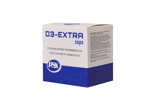 Συμπλήρωμα διατροφής της εταιρείας PSK με βιταμίνη D3 κατάλληλο για άνδρες και γυναίκες. Η βιταμίνη D3 αποτελεί μορφή της βιταμίνης D και βρίσκεται μόνο σε τροφές ζωικής προέλευσης όπως τα ψάρια και το αυγό. Κύρια δράση της είναι η ρύθμιση της απορρόφησης του ασβεστίου και του φωσφόρου συμβάλλοντας στη διατήρηση της υγείας των οστών, των δοντιών και των μυών.