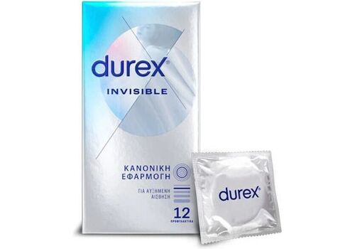 Durex Προφυλακτικά Εξαιρετικά Λεπτά Invisible Κανονική Εφαρμογή, 12τεμ