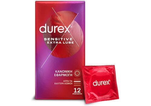 Durex Προφυλακτικά Sensitive Extra Lube Λεπτά 12τμχ