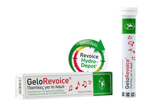 Οι GeloRevoice® Παστίλιες για το λαιμό δημιουργούν με τη λήψη τους μέσω δέσμευσης ύδατος από το στοματικό βλεννογόνο ένα ειδικό σύμπλεγμα υδρογέλης, το οποίο περιέχει και υαλουρονικό οξύ.
