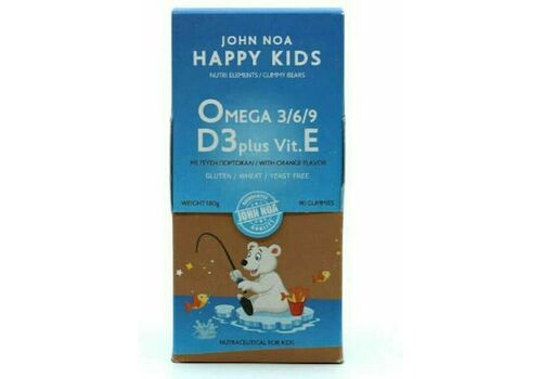 Το John Noa Happy Kids Omega 3/6/9 D3 Plus Vit.E είναι ένα συμπλήρωμα διατροφής για την υποστήριξη της υγείας των παιδιών 3 ετών και άνω. Περιέχει ωμέγα 3/6/9 λιπαρά οξέα και βιταμίνες D & E.