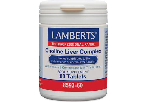 To Choline Liver Complex της Lamberts, αποτελεί μια εξειδικευμένη διατροφική φόρμουλα η οποία παρέχει: • Τιτλοδοτημένο εκχύλισμα γαϊδουράγκαθου (Milk Thistle) των 100mg (ισοδύναμο με 3000mg καρπών του βοτάνου), το οποίο παρέχει εγγυημένα 80mg Σιλυμαρίνης (Silymarin) ανά ταμπλέτα. Η Silymarin αποτελεί το κύριο δραστικό συστατικό του καρπού του γαϊδουράγκαθου. Το γαιδουράγκαθο αποτελεί ένα από τα βότανα με τις περισσότερες αναφορές στην επιστημονική βιβλιογραφία καθώς ανευρίσκονται πάνω από 300 δημοσιεύσεις σχετικά με την χημική του σύσταση και τους μηχανισμούς δράσης του. • Το σύνολο των Βιταμινών του συμπλέγματος Β σε υψηλή ποσότητα. • 100mg Χολίνης ανά ταμπλέτα η οποία συμβάλλει* στη διατήρηση της φυσιολογικής ηπατικής λειτουργίας Όπως όλα τα σκευάσματα της Lamberts, παρασκευάζεται εντός του Ηνωμένου Βασιλείου σύμφωνα με τα αυστηρά πρότυπα της Φαρμακευτικής GMP (Pharmaceutical GMP).