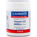 Lamberts Vitamin D3 4000iu, Υγεία Οστών, Δοντιών, Ανοσοποιητικού (100μg) 30caps