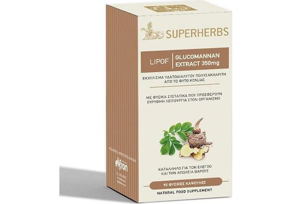John Noa Superherbs Glucomannan Lipof Συμπλήρωμα Διατροφής για τη Μείωση Βάρους και Λίπους, 90 κάψουλες