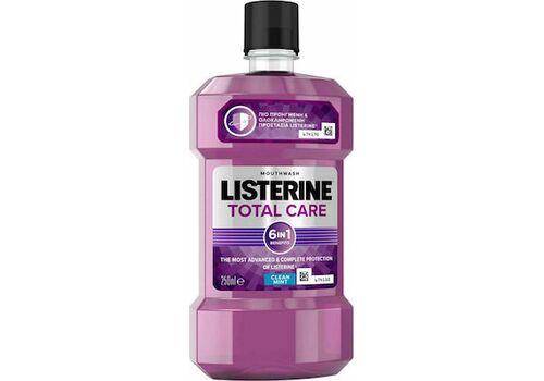 Το Listerine Total Care είναι το πιο πλήρες Listerine χάρη στη μοναδική του σύνθεση από αιθέρια έλαια, φθόριο και χλωριούχο ψευδάργυρο. Έχει τη γεύση μέντας και προσφέρει πολύπλευρη προστασία συνδυάζοντας 6 οφέλη σε 1 Listerine.
