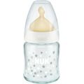Nuk Γυάλινο Μπιμπερό First Choice Plus Κατά των Κολικών με Θηλή Καουτσούκ 120ml για 0-6 μηνών Λευκό Αστεράκια